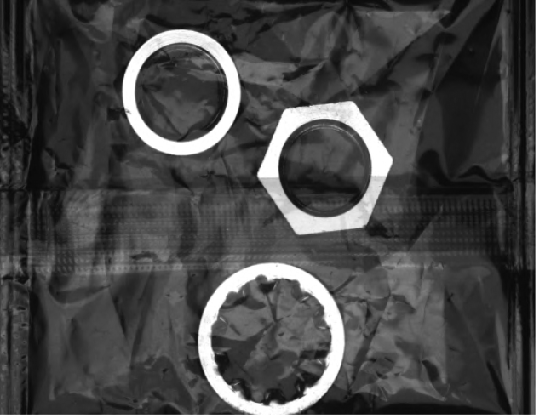 檢測零件是否漏放,樣品為金屬面,需要隔著袋子測試,需要選取波長較長的光源穿透袋子,所以我們選用紅色同軸光源,把金屬面打亮,特征明顯無干擾